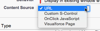 We have determined our Display Type and Behavior, now we need to determine what the Content Source of our Button will be! While we have four different options, we will only be using two of these for launching our Flow (URL & Visualforce Page).