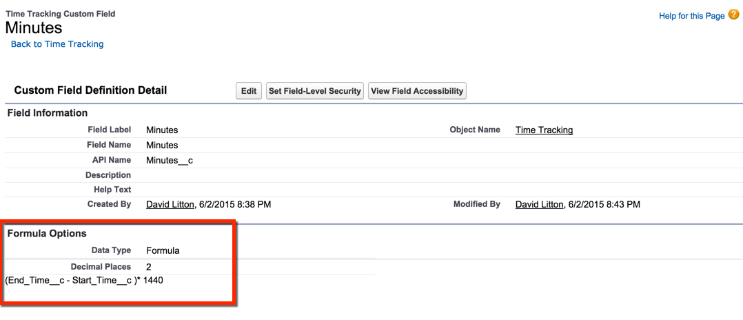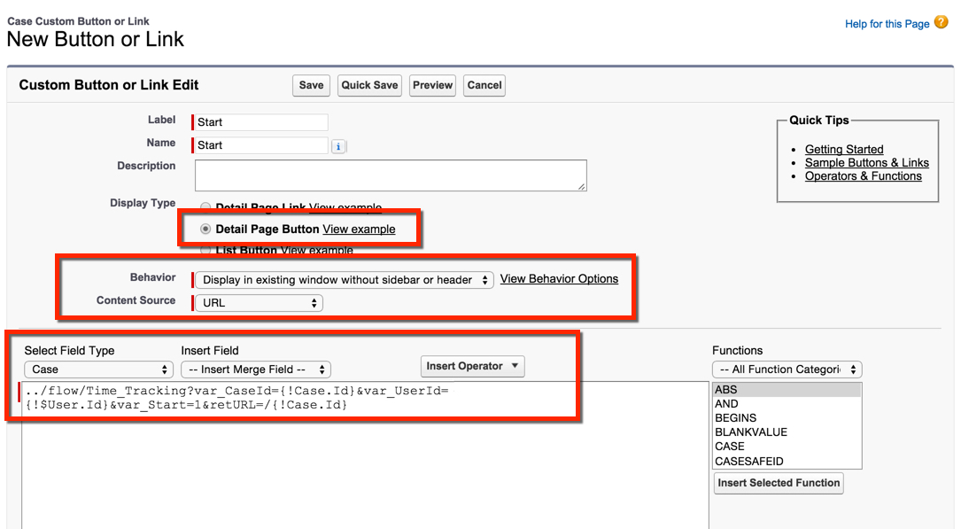 Click Save, and you are done! Now you can add the Buttons to your Page Layout and start tracking your time!