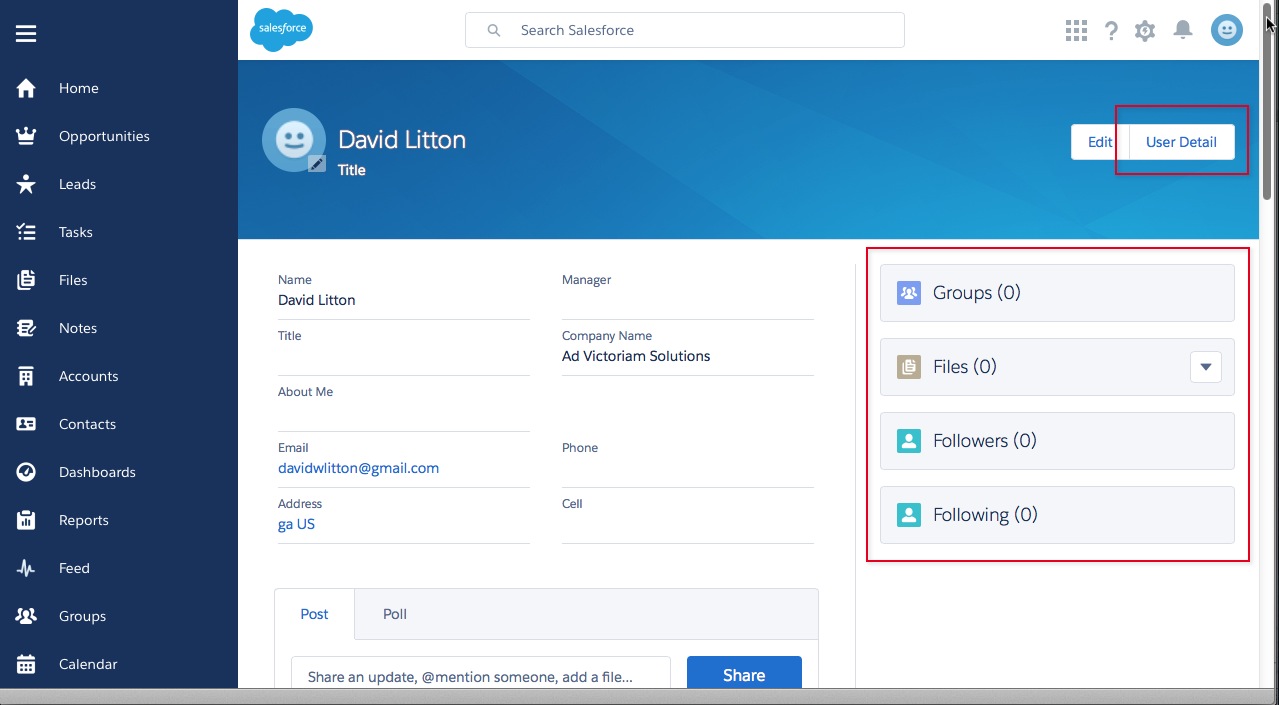 I’ve never been a huge fan of the current User Profile. These new views are much more slick and are really just a copy of the new UI for our objects. There is also a nice BIG button for us to get to the User Detail if we need to play with the Profile or Role that is assigned. I think doing something like a Facebook cover page would be cool here, but I don’t see anywhere to change that blue screen at this time.
