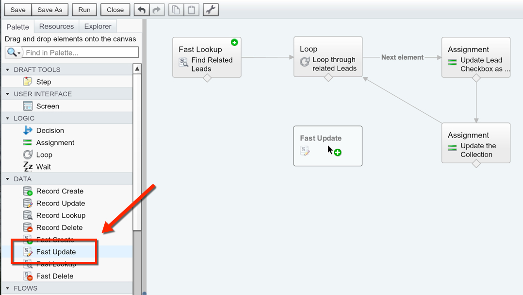 If you have not yet read Fast Lookup and Loops, you might want to take a look at them. This post is focused on how we get our Fast Update to work, and not so much how we query or loop through the records. I will be showing the ‘finished’ Fast Lookup and Loop so that you have it as reference in terms of what Variables were used.