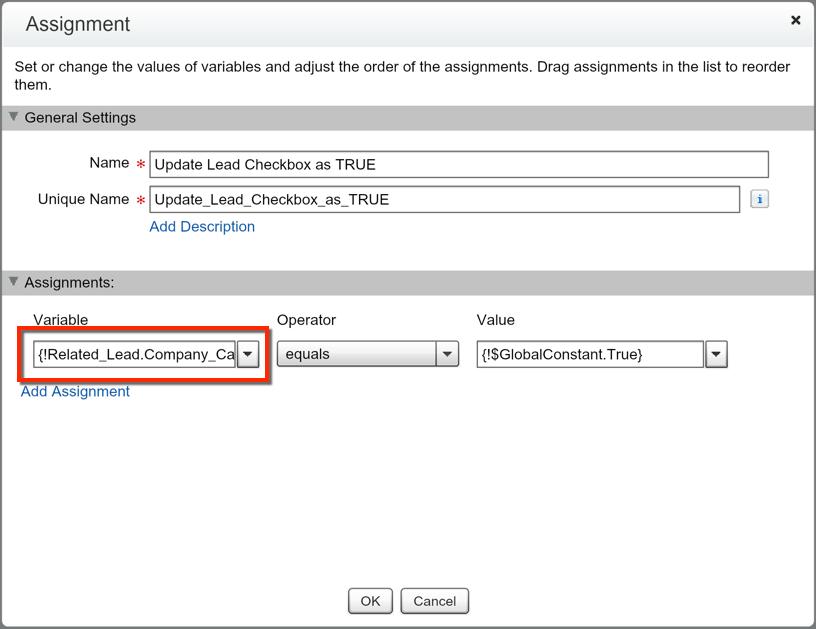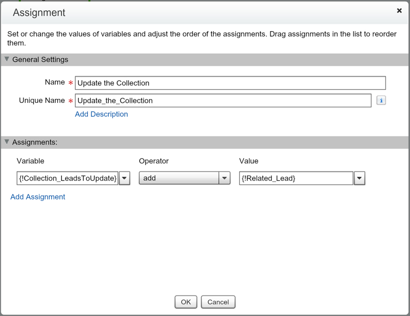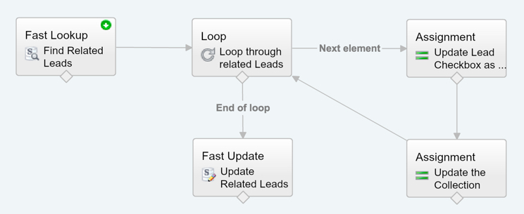 In our second Assignment Element we are adding the SObject Variable we just updated to our new SObject Collection Variable that we are going to use in our Fast Update. If you’re used to doing data loads, think of this as adding a row to an excel sheet. Every time you are looping through a Lead record, we are updating the data (as you saw in the previous element) and adding it as a row in our collection of Assets for the Fast Update (as you see in this element).